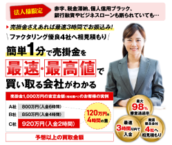 法人様でしたら利用は必須。ファクタリングベストさんの最大の特徴は、法人限定で優良4社に相見積もりができること。時間や労力を掛けて1社1社申込する必要がありません。利用者の口コミにもありますが、各ファクタリング会社の競争意識が高く好条件で資金調達が可能な点です。ファクタリングベストさんに加盟しているファクタリング会社さんは、実力や実績がある会社が幅広くいますので、最適なファクタリング会社が見つかる可能性が極めて高いです。